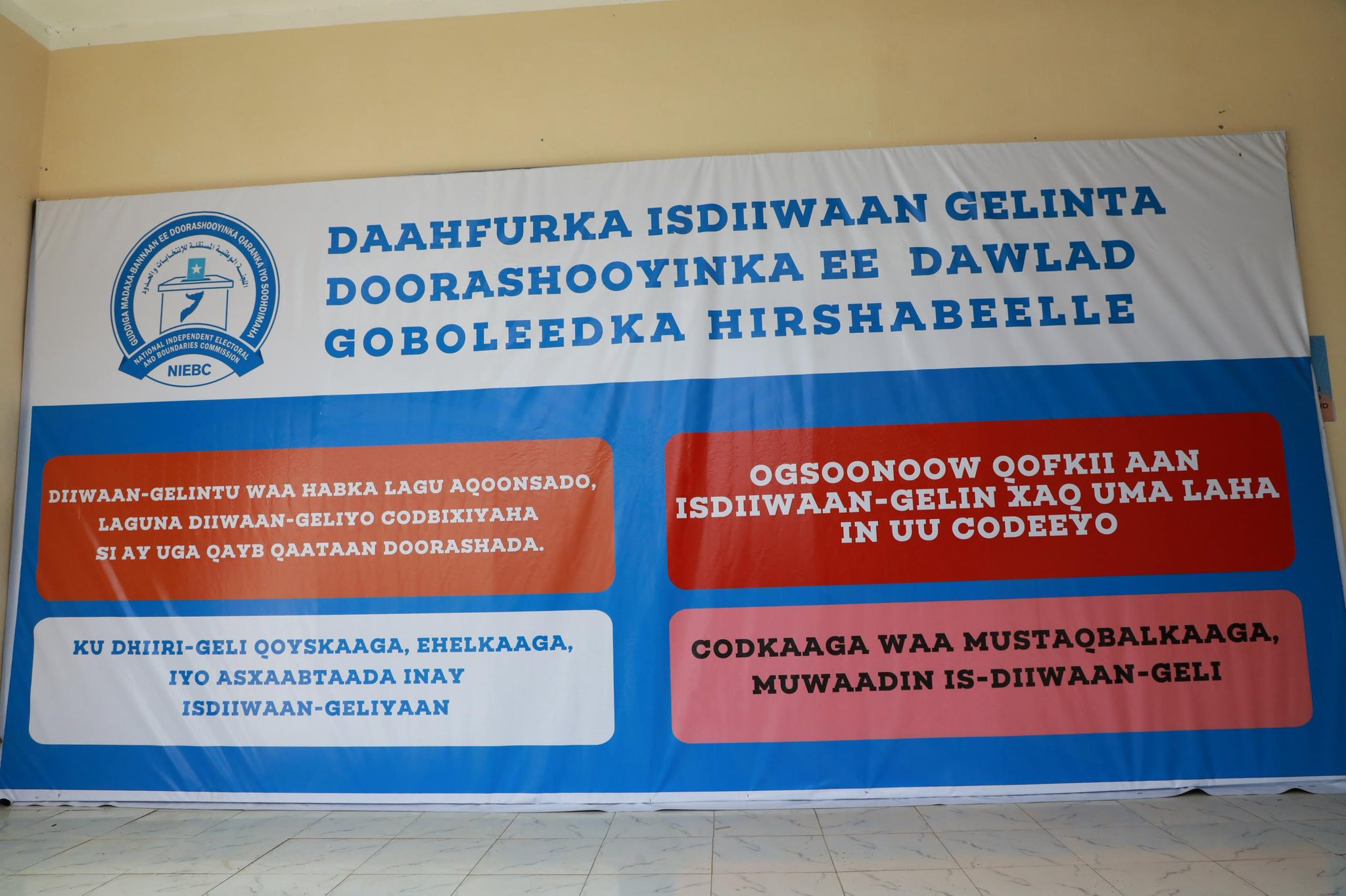 GMDQS waxuu si rasmi ah ugu baaqayaa dhammaan muwaadiniinta u-qalma ee deggan Dowlad Goboleedka Hirshabelle inay yimaadaan diiwaangelinta iyagoon dib u dhicin. Ka-qaybgalkaagu waa mid aad muhiim u ah si loo xaqiijiyo hamiga dimoqraadiyadeed ee Soomaaliya loona qaabeeyo mustaqbal barwaaqo ah oo loo dhan yahay oo u-qalma jiilalka soo socda. Guddigu si cad aye uga go’an tahay inuu ilaaliyo heerarka ugu sarreeya ee daacadnimada, daah-furnaanta, iyo dhexdhexaadnimada inta uu socdo hannaankan oo dhan, isagoo sidaas ku hubinaya in cod kasta oo diiwaangashan uu ka qayb qaato Soomaaliya xooggan oo dimoqraadi ah.
